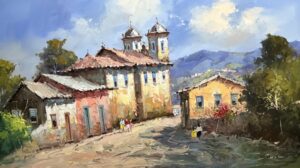 Óleo sobre tela do artista André Lombardi, emoldurado, nas medidas 20x30cm.